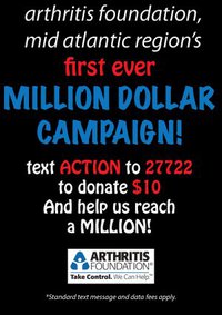PS: Looking for an easy way to Pay It Forward? Simply text the word ACTION to 27722 from your cell phone to donate $10 to the Arthritis Foundation, Mid Atlantic Region’s Million Dollar Campaign for Arthritis! Learn more here.
