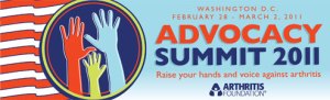 Members of Congress. This year, the Summit held in Washington, D.C. will be from Feb. 28 – March 2, 2011. At the Advocacy Summit, attendees will learn firsthand about priority advocacy issues, meet face-to-face with Members of Congress to educate them about arthritis and its devastating effects on the 50 million adults and 300,000 kids with the disease, their families, and our country’s economy, and, will let Congress know more needs to be done for people with arthritis. There is also a special Kids Summit for children with Juvenile Arthritis.