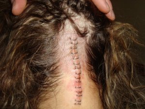 The weeks leading up to it were anxiety-filled. Big time. And the first couple days were ROUGH! However, my friends and family who came to visit me, sent flowers, cards, and gifts, and were just “there” for me was amazing and helped me through it. I went in for surgery on a Wednesday and got discharged that Saturday. I have a “Frankenstein chic” scar on the back of my head and neck. It is about 5″ and there are about 20-some staples. Luckily, they didn’t shave anywhere near as much hair as I’d thought.