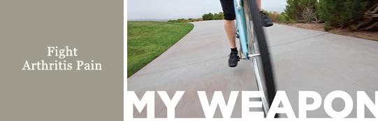 The Arthritis Foundation encourages us all to have a “weapon against arthritis.” Most of these weapons of choice are physical – from doing yoga or tai chi, hiking or biking, swimming, golf, or tennis, etc. to stay active and combat arthritis pain.
