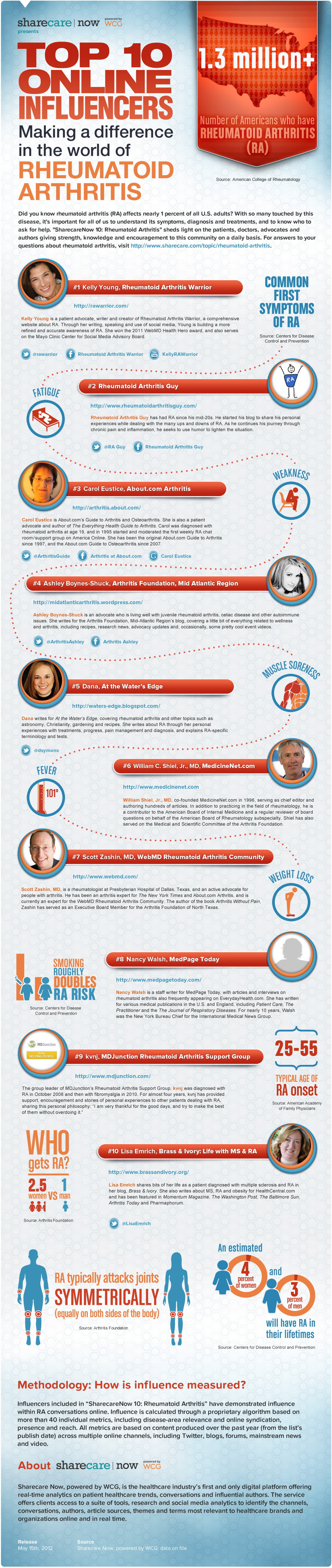 SharecareNow, a website that is affiliated with Dr. Mehmet Oz, has used a complex algorithm to figure out the Top 10 Rheumatoid Arthritis Online Influencers, and “Arthritis Ashley” — the author of this blog — was one of them! Check out the rest: