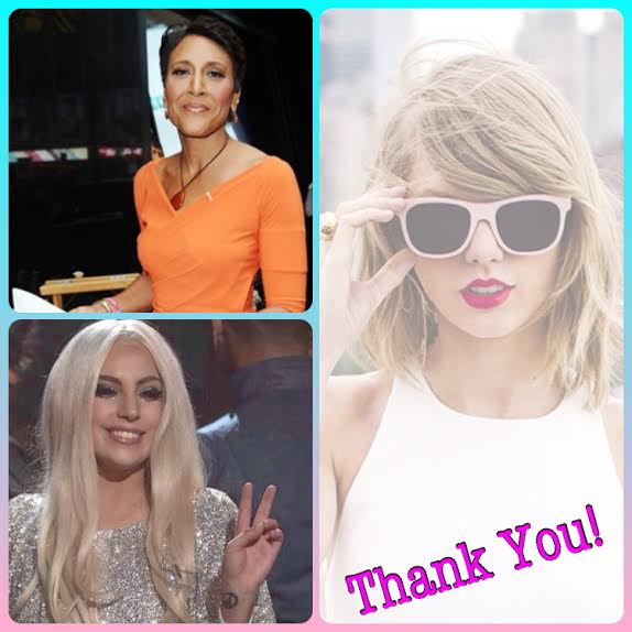 To Robin Roberts: Robin, one of your GMA camera men, Eddie, gave you a copy of my book, Sick Idiot to read, along with a card and a photo. The reason I sent it to you is because I read your book during one of my own chemo infusions for my autoimmune conditions! Although your health issues were far more serious, I could relate so intently to so much of what you said, and what you felt. I mostly appreciated your positive attitude in the midst of such difficulty and adversity. I then saw you at the Pennsylvania Governor’s Conference for women last year, in 2014. You wouldn’t have known it, I’m sure, but I was also a speaker at the event, and led a roundtable discussion on using social media for good. I enjoyed your keynote speech and found it to be very inspiring and encouraging. I like the idea that “everybody’s got something!” and I share that message myself, frequently. Although I don’t know you, of course, I feel a connection to you and think that you are a beautiful soul, just like Taylor and Gaga. Thank you for your strength, courage, and for sharing your faith with all of us.